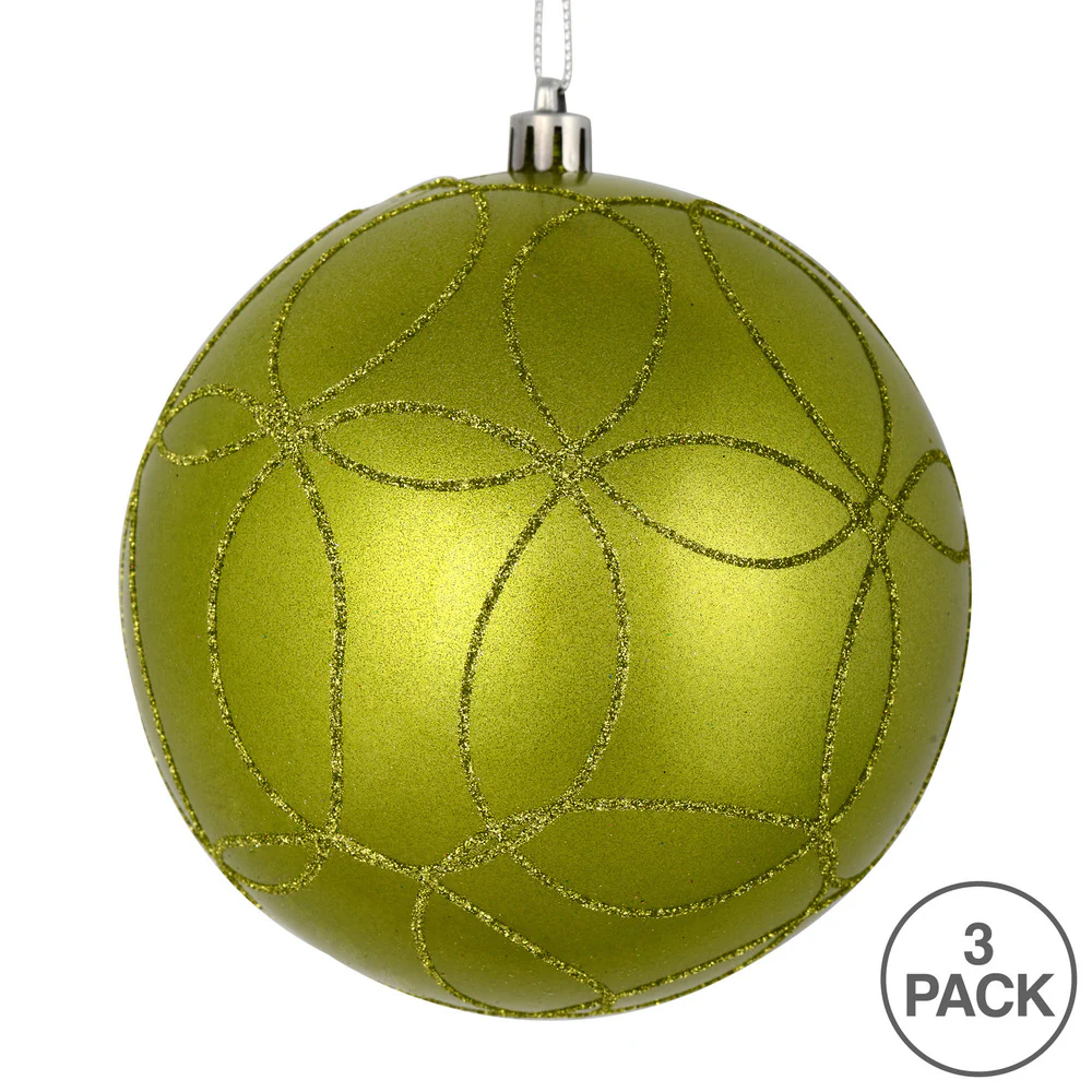 Vickerman 4" Lime 4-Finish Ball Ornament Assortment 12 per Box