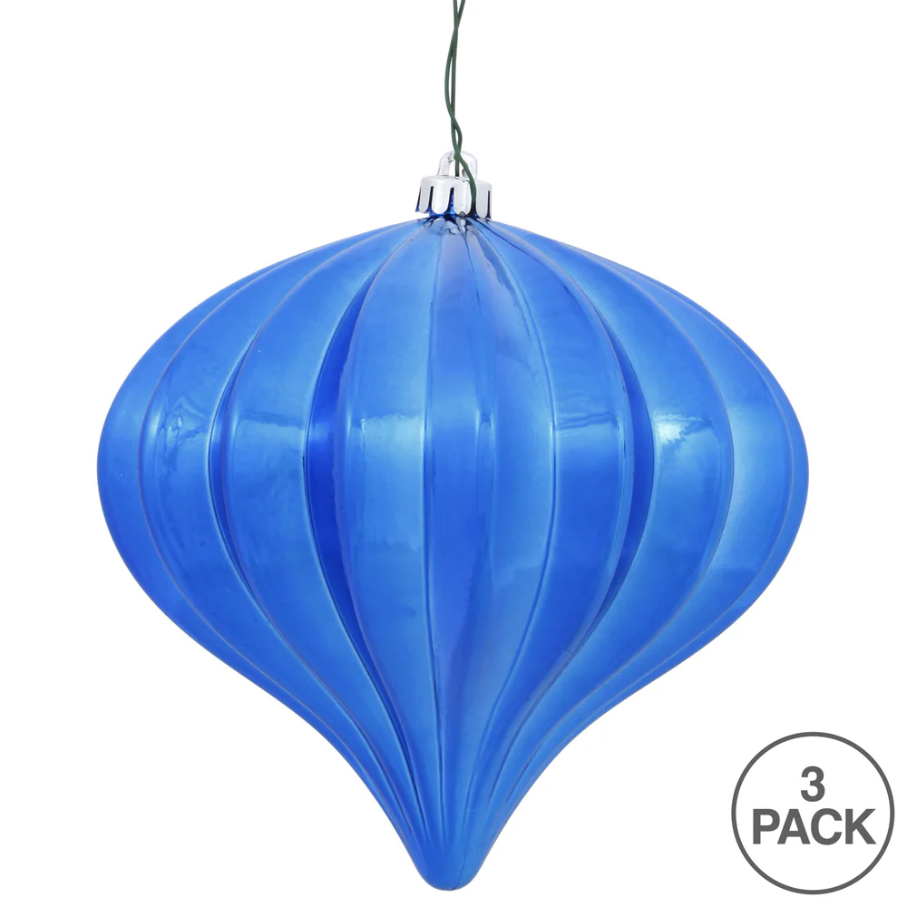 Vickerman 5.7" Blue Shiny Onion Christmas Ornament UV treated Set of 3