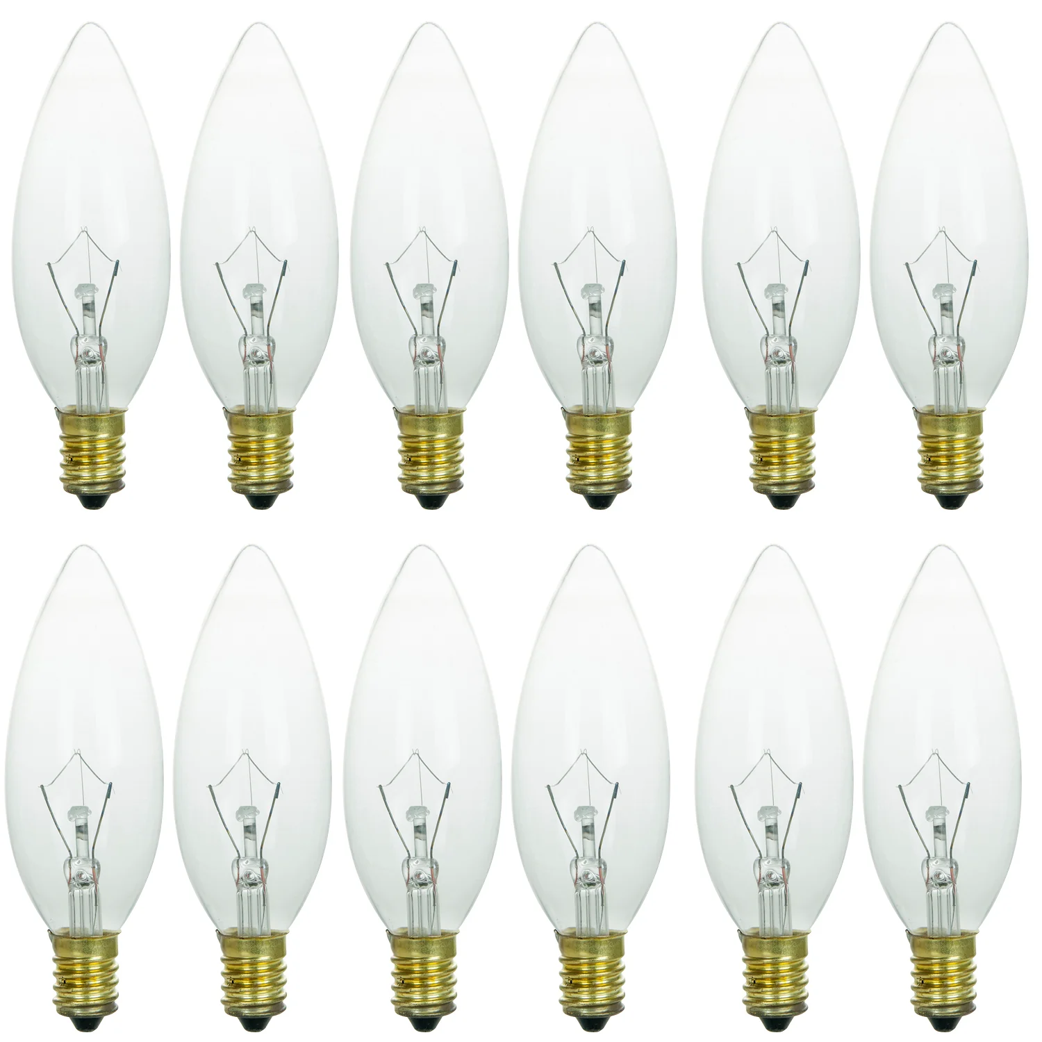Sunlite 40CTC/32/E14/12PK 40W Incandescent Torpedo Tip Chandelier with Crystal Clear Light Bulb and European E14 Base (12 Pack)