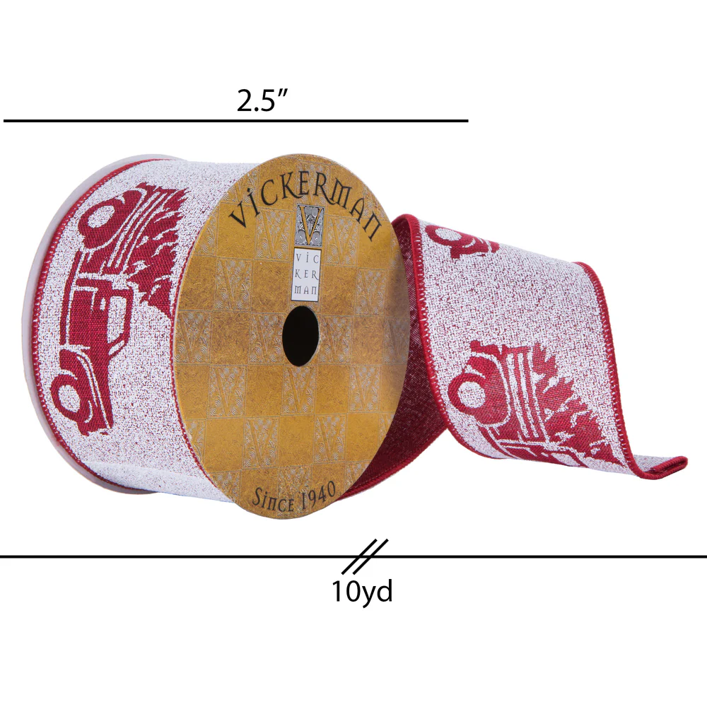 Vickerman 2.5" x 10 Yards Red Christmas Tree in a Truck Christmas Ribbon