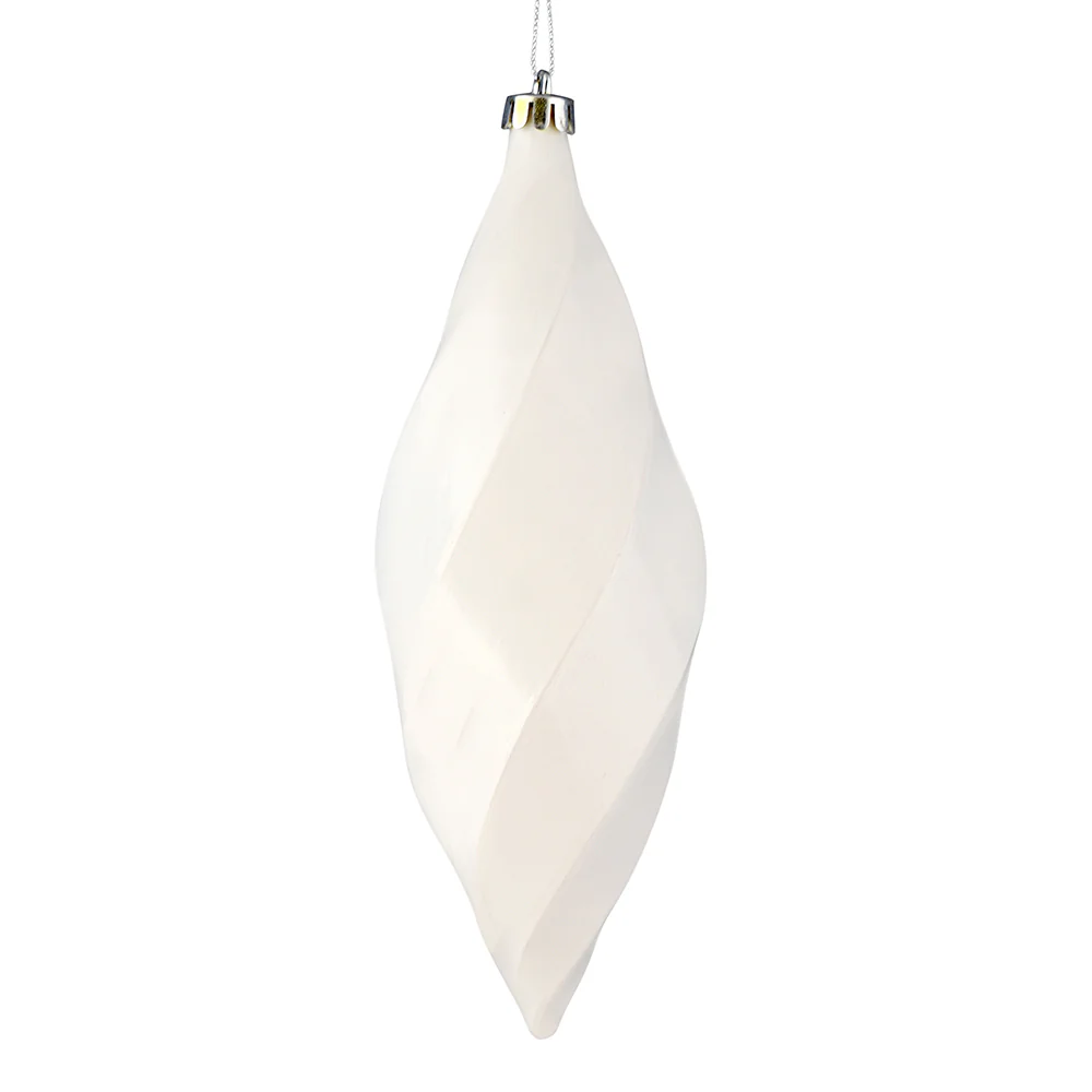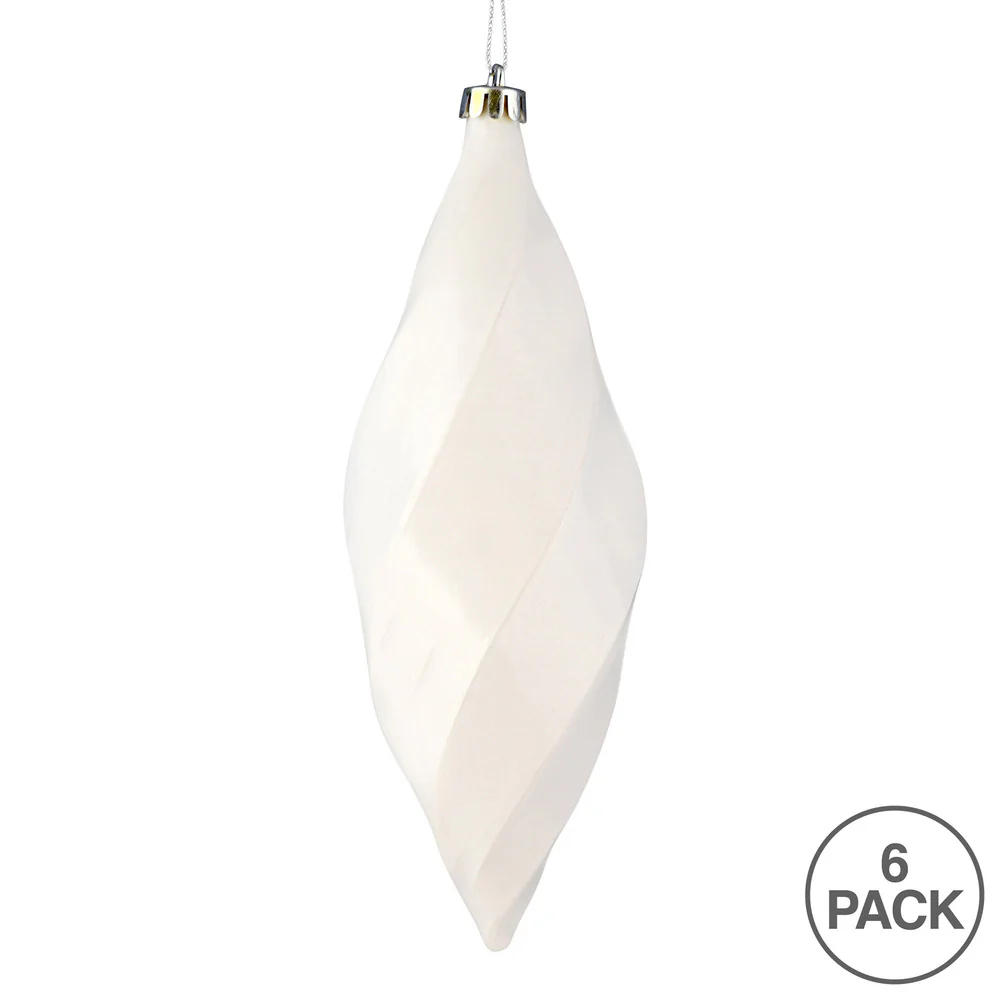 Vickerman 8" White Shiny Swirl Finial Ornament Pack of 6