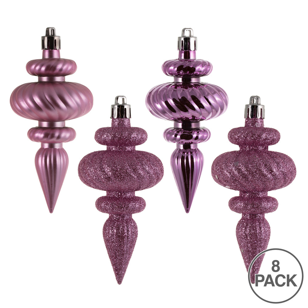 Vickerman 4" Pink 4-Finish Finial Ornament 8 per Box