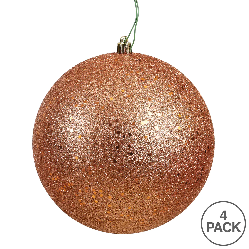 Vickerman 5" Rose Gold Matte Glitter Ball Christmas Ornament 4 pieces per bag