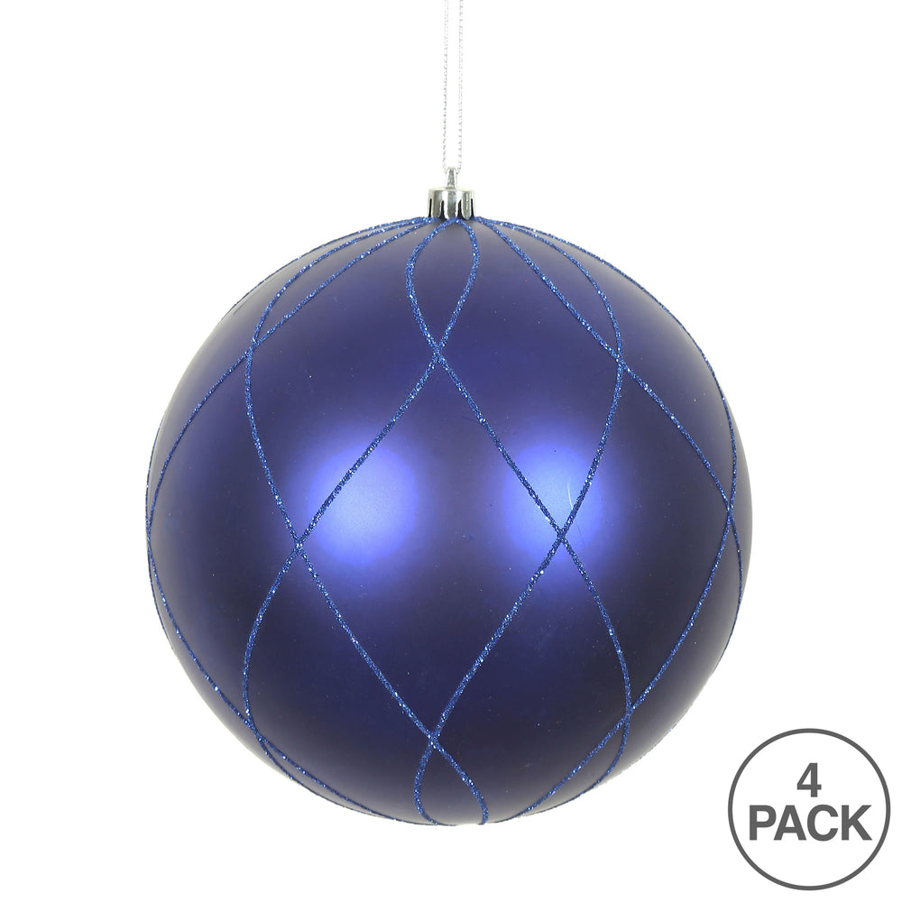 Vickerman 4" Cobalt Blue Matte and Glitter Swirl Ball Ornament 4 per Box