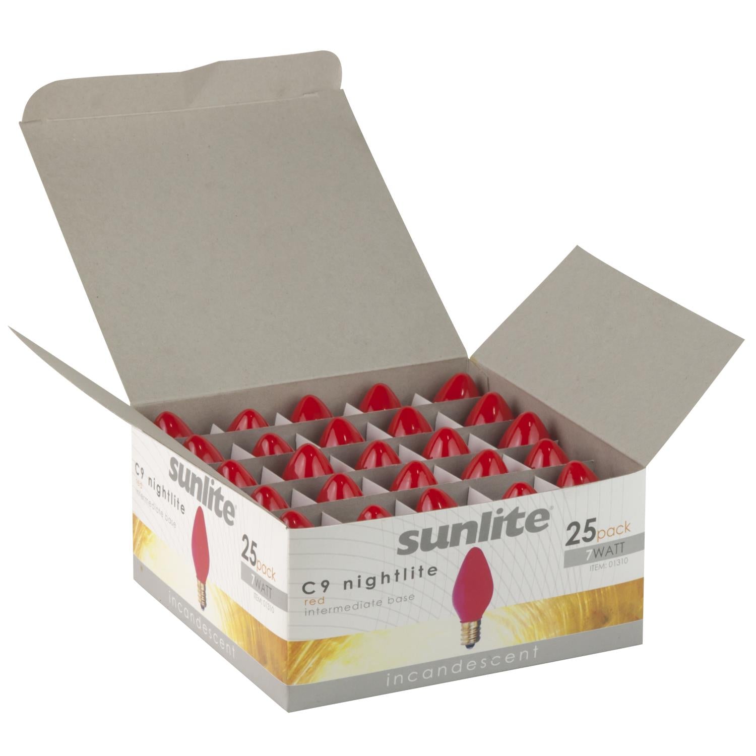 25 Pack Sunlite 7 Watt C9 Colored Night Light, Intermediate Base, Ceramic Red