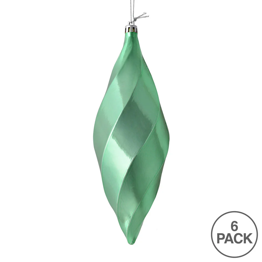 Vickerman 8" Seafoam Green Shiny Swirl Finial Ornament Pack of 6