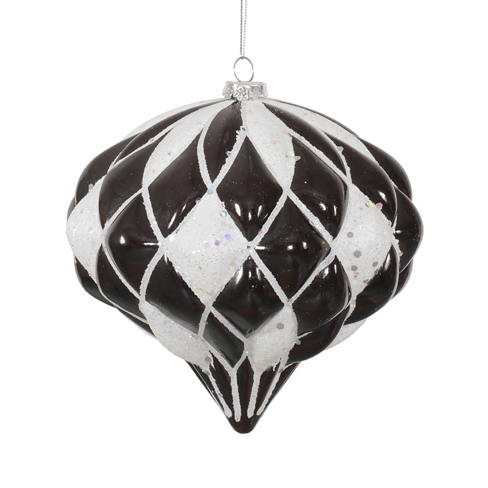 Vickerman 5.7" Black and White Matte/Glitter Diamond Onion Christmas Ornament