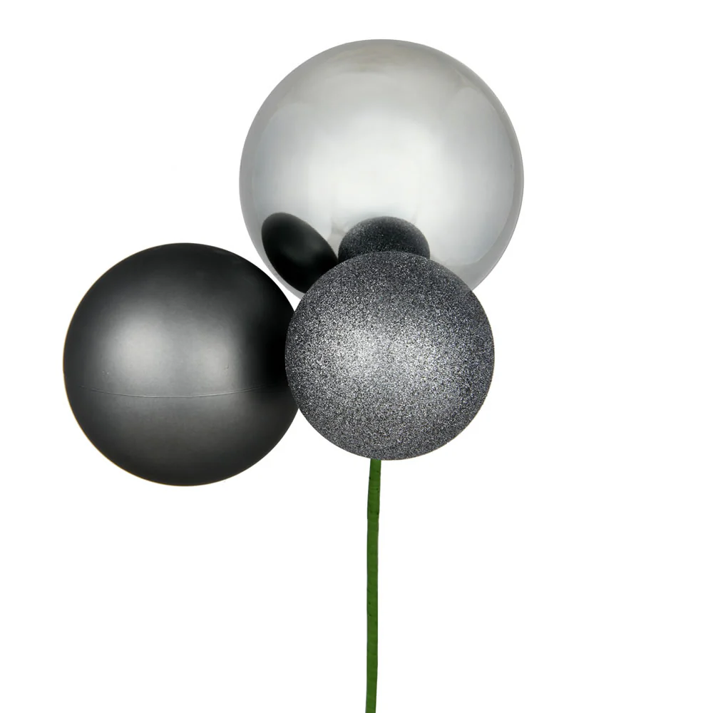 Vickerman 18" Pewter Ball Ornament Christmas Pick Pack of 2