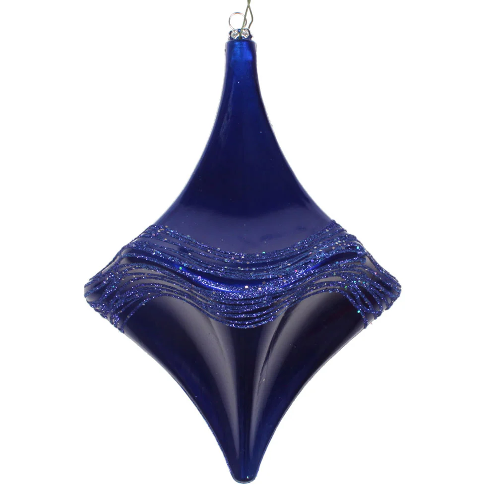 Vickerman 8" Cobalt Blue Candy Glitter Drop Ornament. This ornament is the perfect addition to any holiday decorating project. Each ornament features a drilled cap with threaded wire for easy decorating.