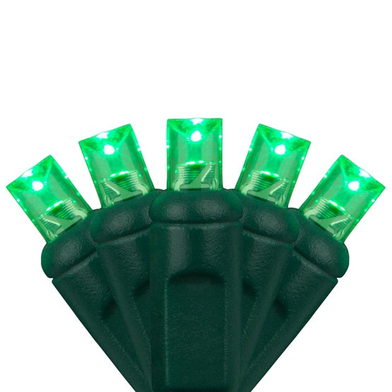50-LIGHT RECTIFIED 5MM LED LIGHT SET; PURE GREEN BULBS; GREEN WIRE, Approx. 25' Long