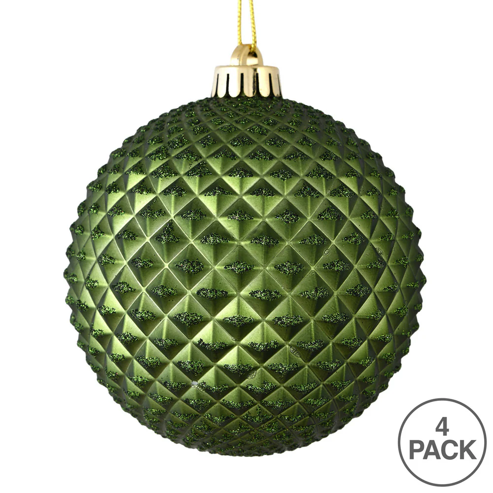 Vickerman 6" Moss Green Durian Glitter Ball Ornament 4 per Bag