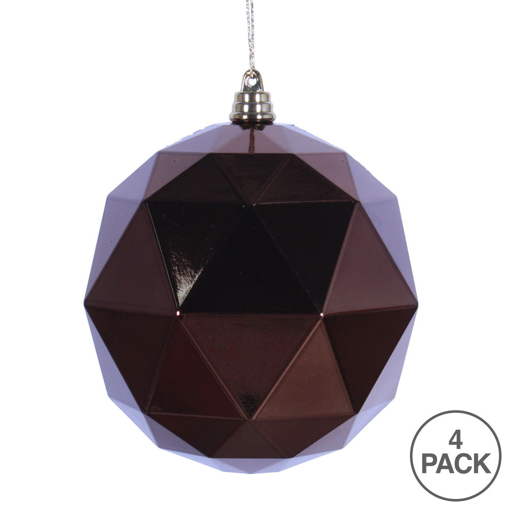 Vickerman 4.75" Mocha Shiny Geometric Ball Ornament 4 per bag