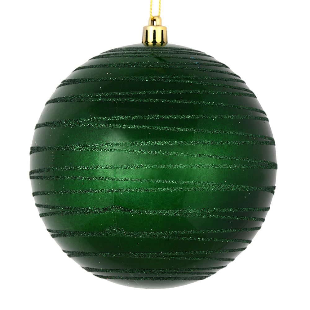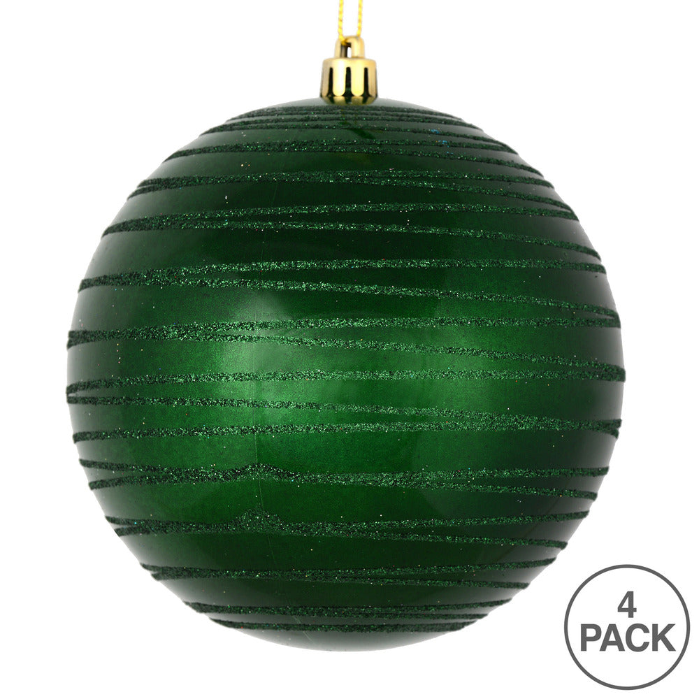 Vickerman 4" Emerald Candy Finish Ball Ornament with Glitter Lines 4 per Bag