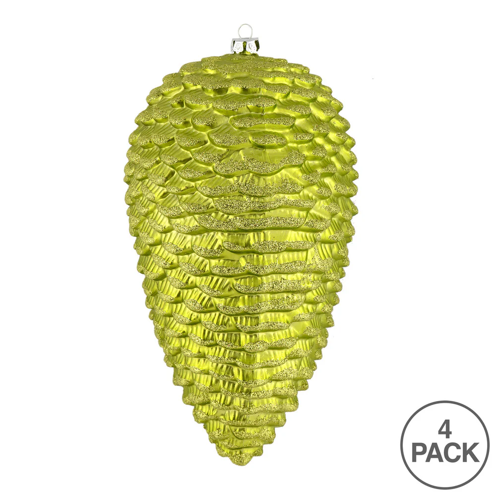 Vickerman 7" Lime Matte Glitter Pinecone Christmas Ornament 4 per set