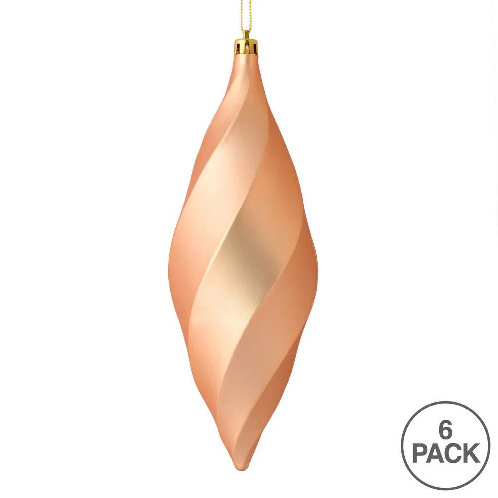 Vickerman 8" Café Latte Matte Swirl Finial Ornament Pack of 6