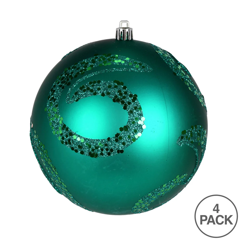 Vickerman 4.75" Teal Matte Sequin Swirl Ornament 4 per Bag