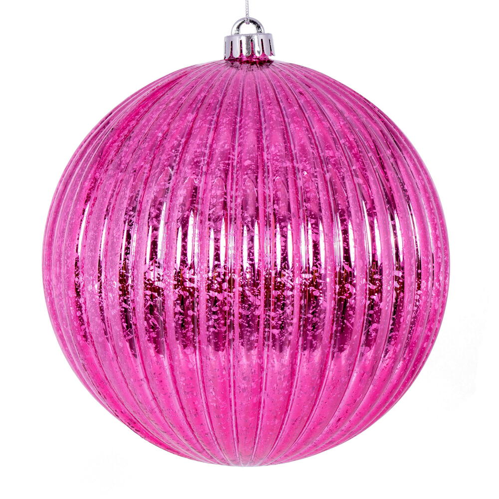 Vickerman 8" Pink Shiny Lined Mercury Ball Ornament.