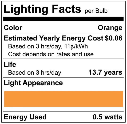 Luxrite LED C7 Small Light Bulb, E12 Candelabra Base, 0.5W, Orange Finish (LR21756)