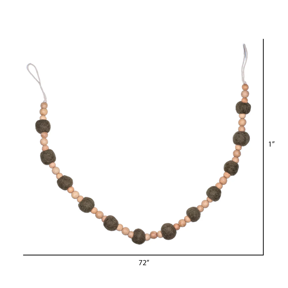 Vickerman 72" Olive Wood and Felt Pom Pom Garland