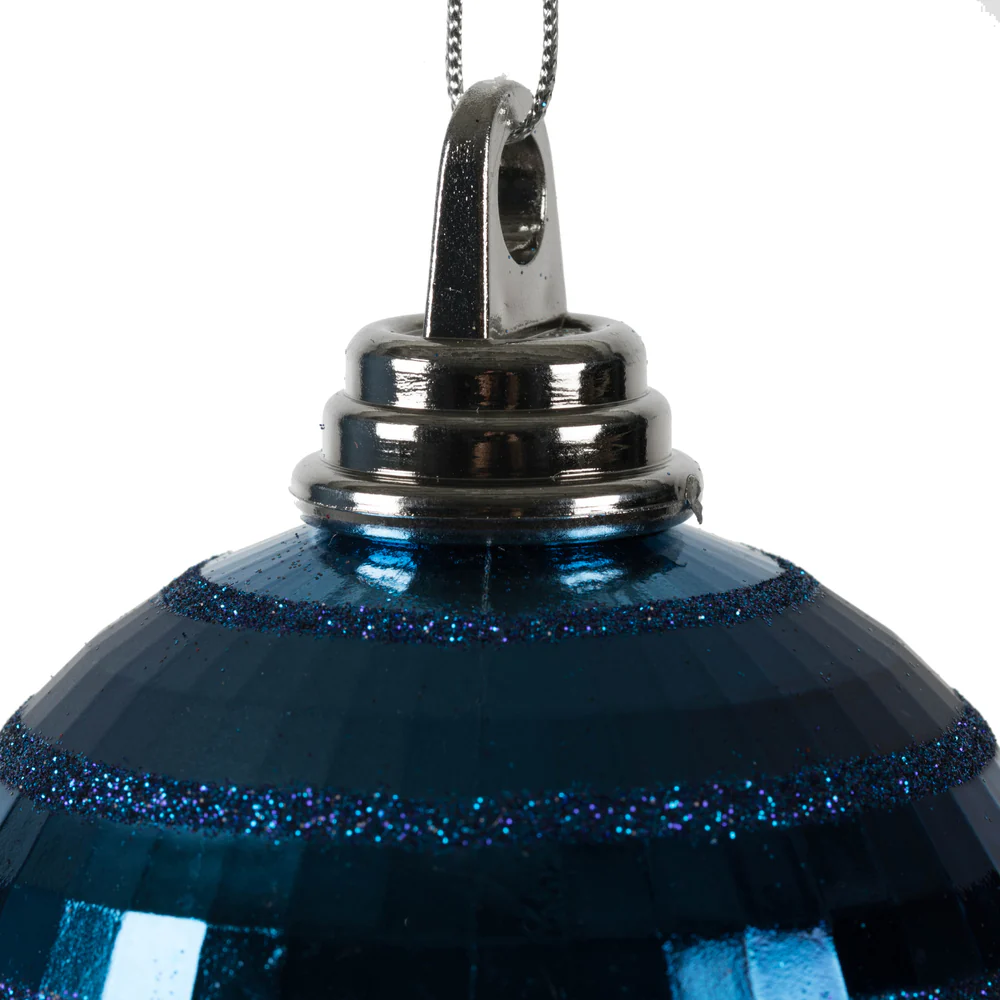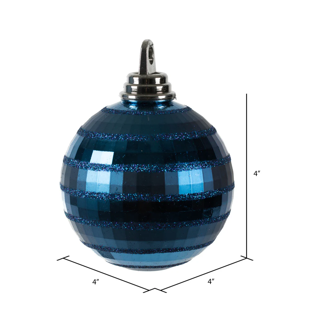 Vickerman 4" Midnight Blue Shiny and Matte Mirror Ball Christmas Ornament with Glitter Accents 4 per Box