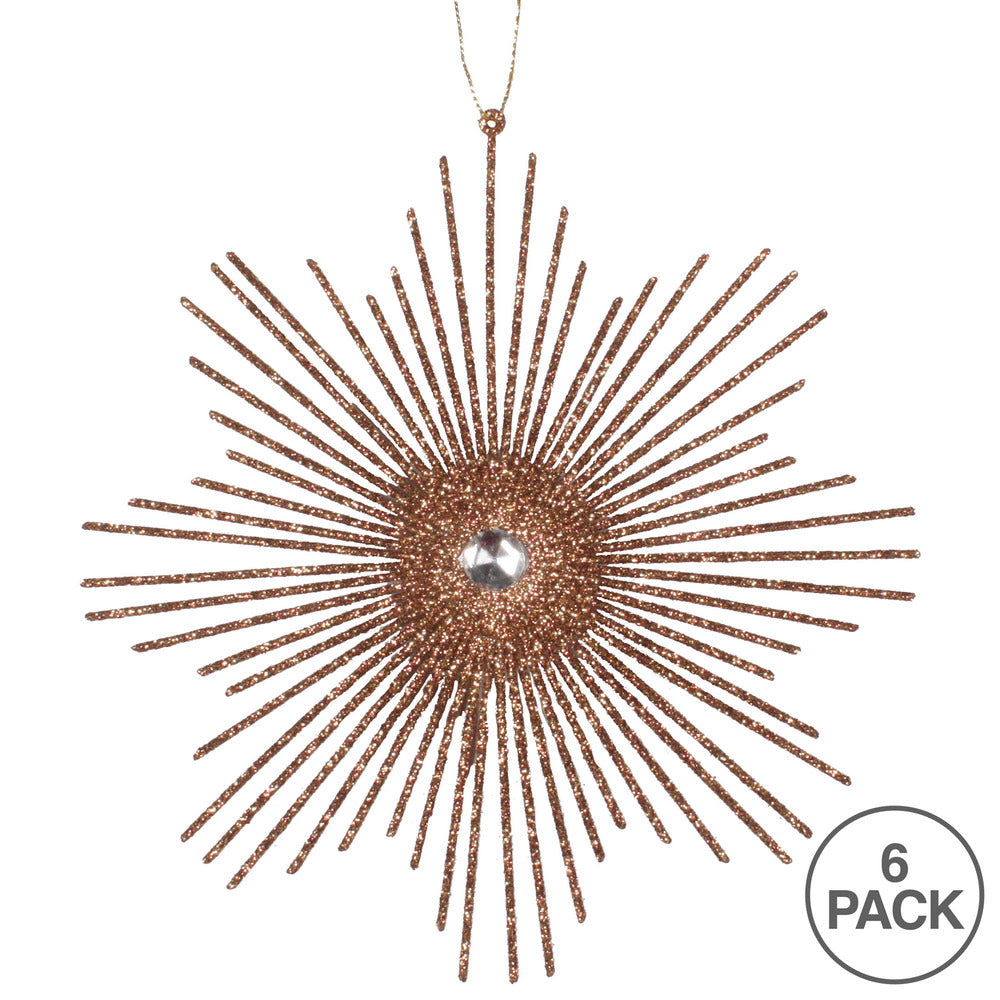 Vickerman 6.5" Mocha Snowflake Burst Glitter Christmas Ornament 6 per Bag