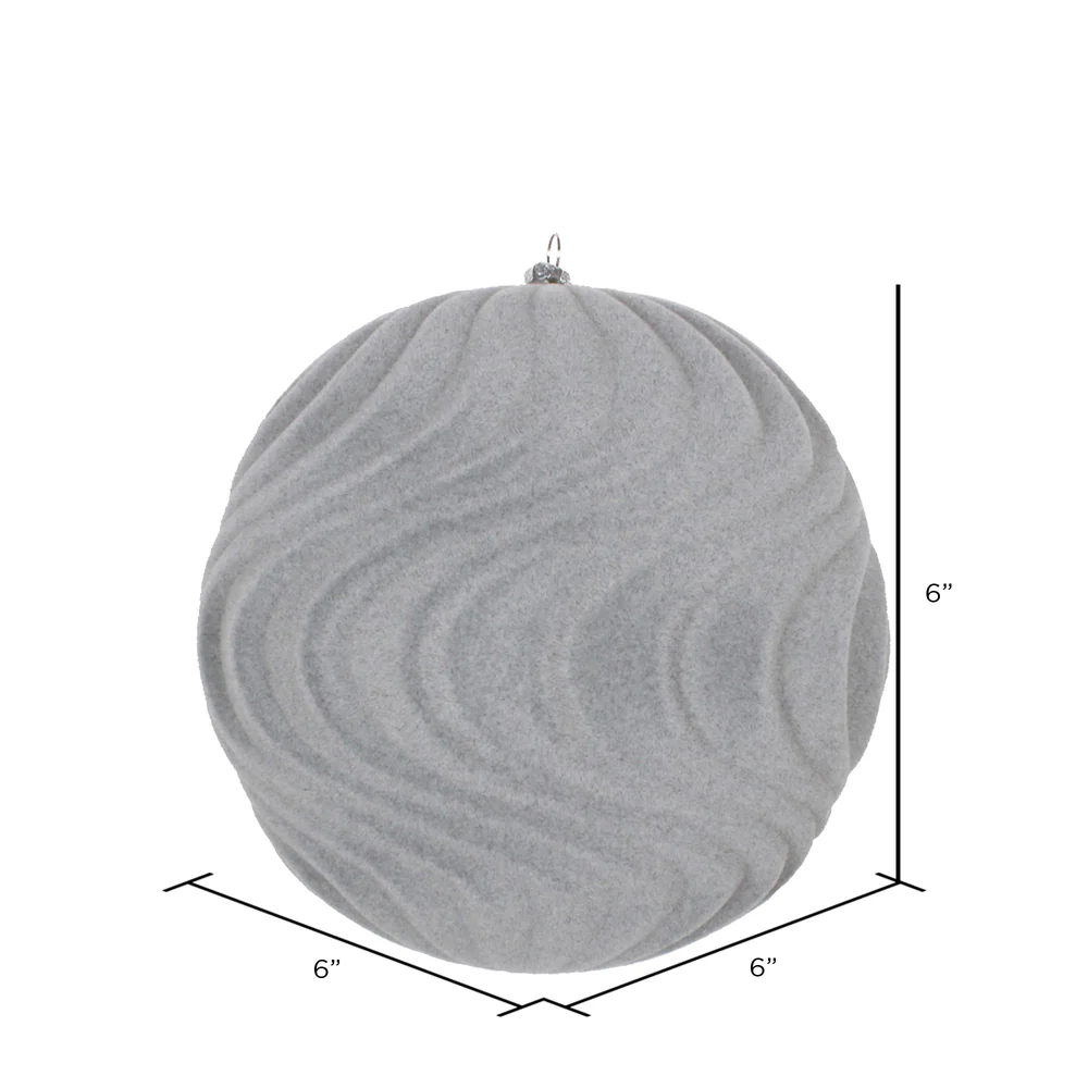 Vickerman 6" Silver Flocked Wave Ball Ornament 2 per Bag