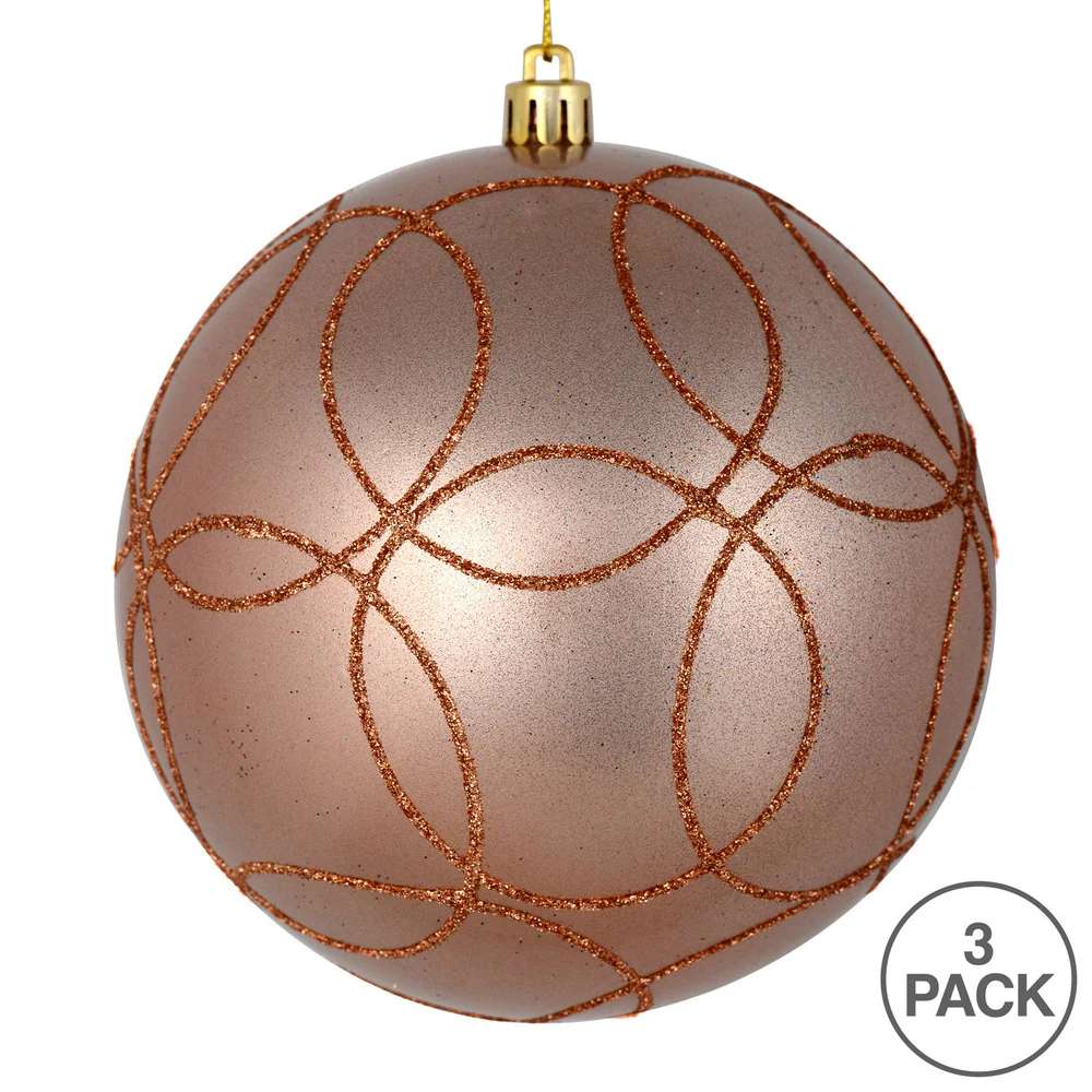 Vickerman 6" Rose Gold Candy Ornament with Circle Glitter Pattern 3 per Bag