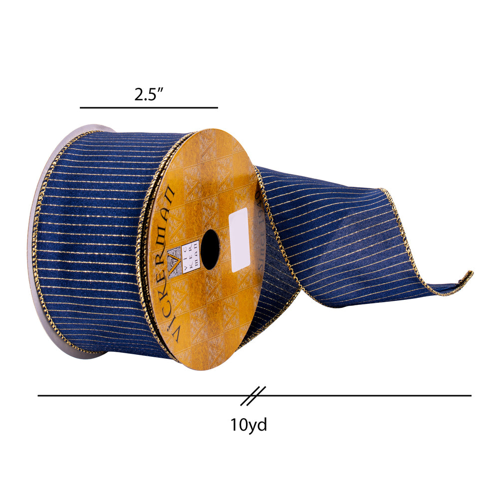 Vickerman 2.5" x 10 Yards Midnight Blue with Gold Stripes ribbon