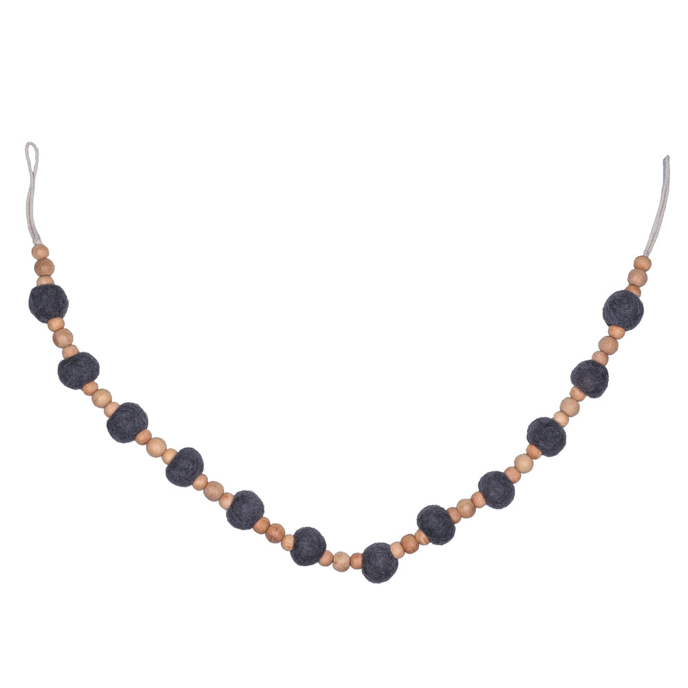 Vickerman 72" Light Gray Wood and Felt Pom Pom Garland
