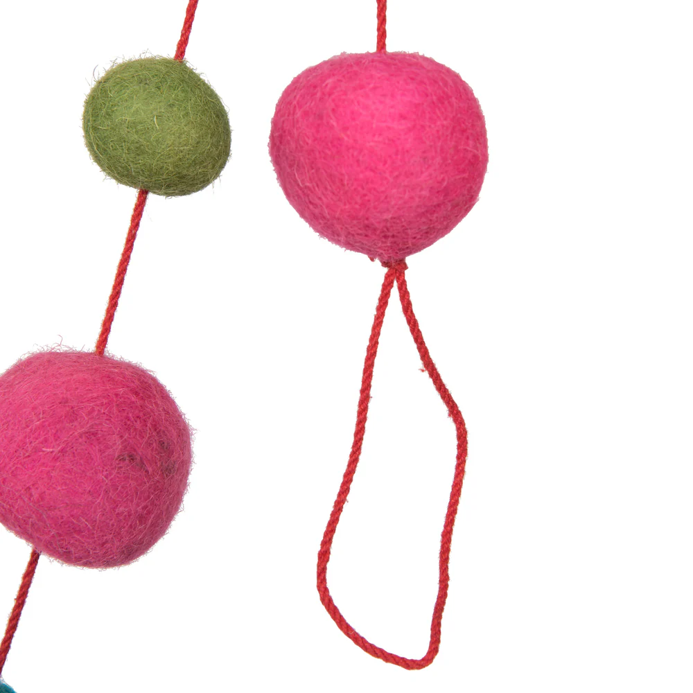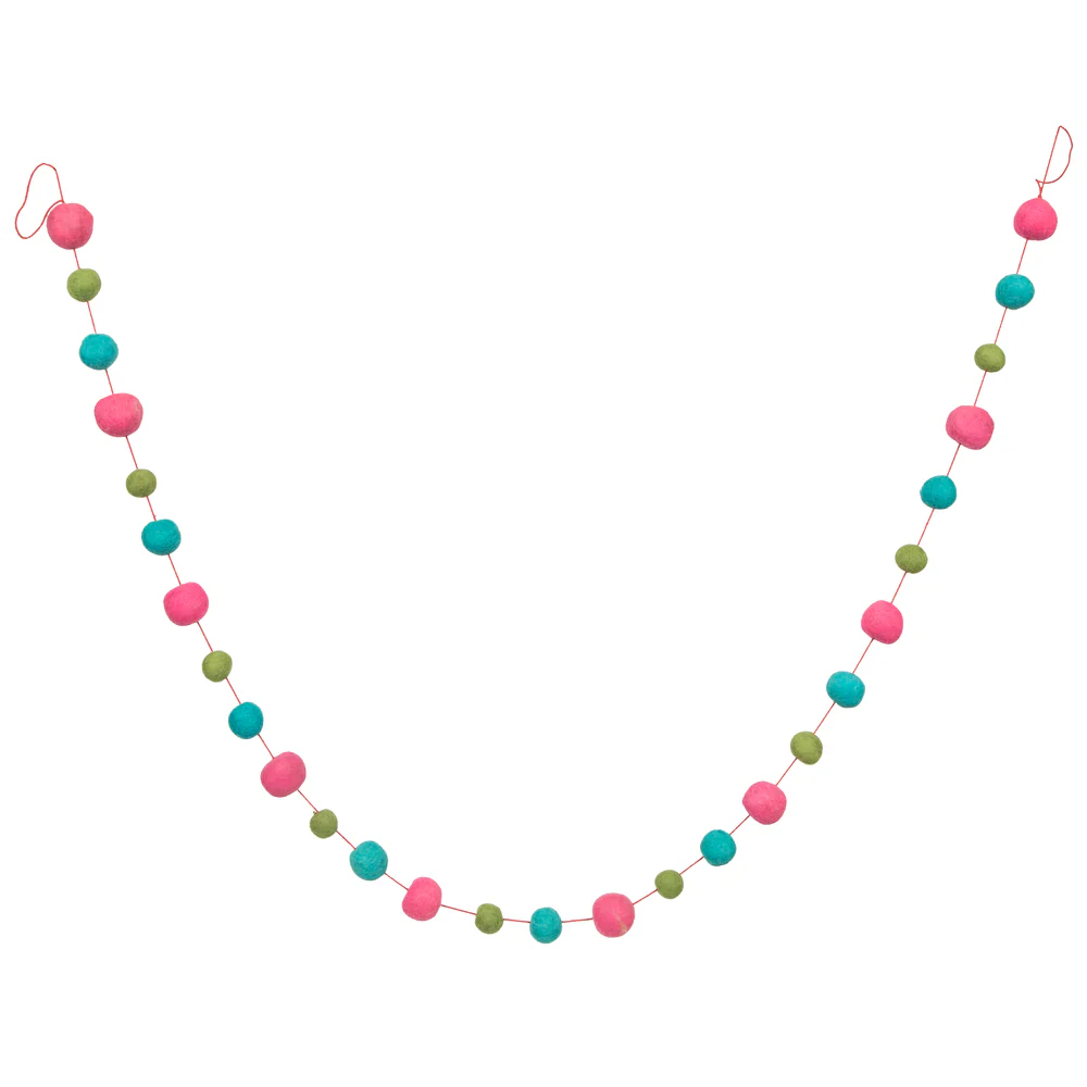 Vickerman 6' Pink Turquoise and Lime Wool Pom Pom Garland