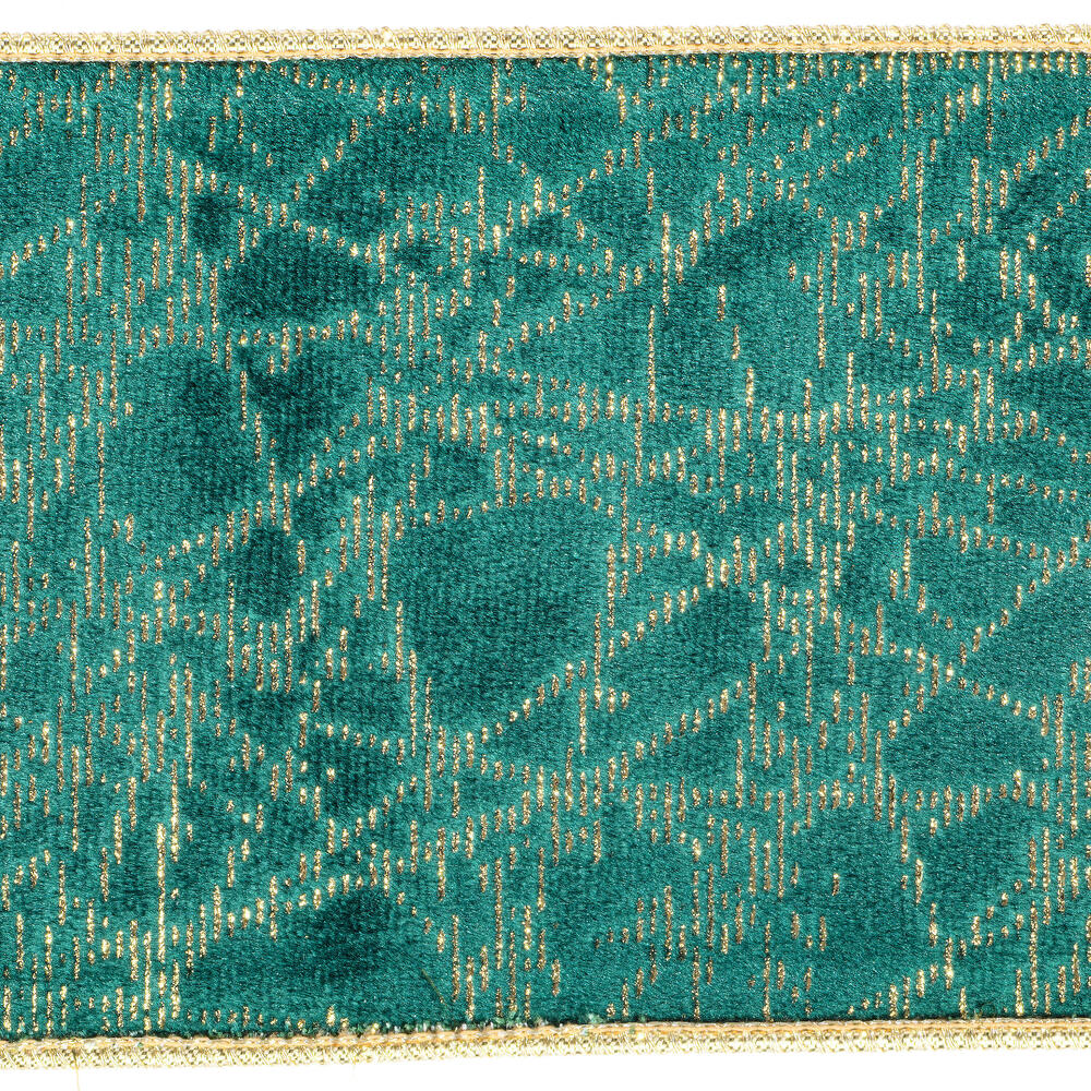 Vickerman 4" x 10 Yards Dark Green/Gold Lines Wired Edge Christmas Ribbon.