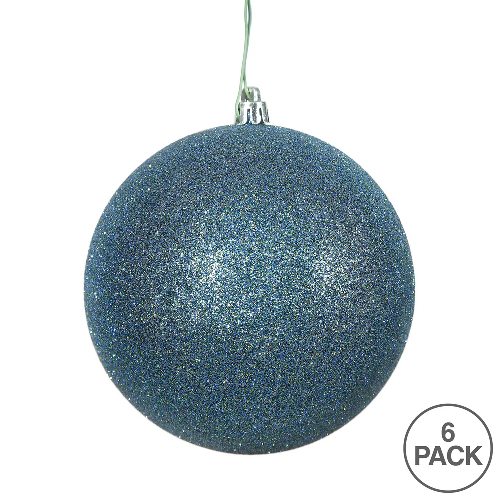 Vickerman 4" Sea Blue Glitter Ball Ornament 6 per Bag