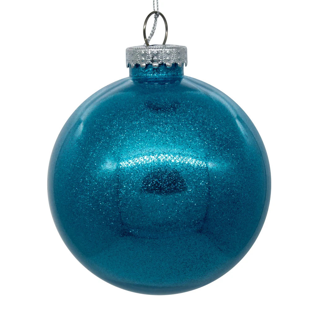 Vickerman 6" Clear Ball Christmas Ornament with Turquoise Glitter Interior 4 Pieces per bag