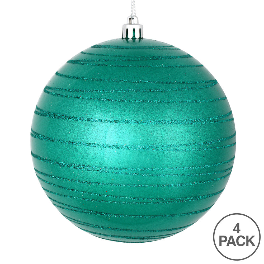 Vickerman 4" Teal Candy Finish Ball Ornament with Glitter Lines 4 per Bag