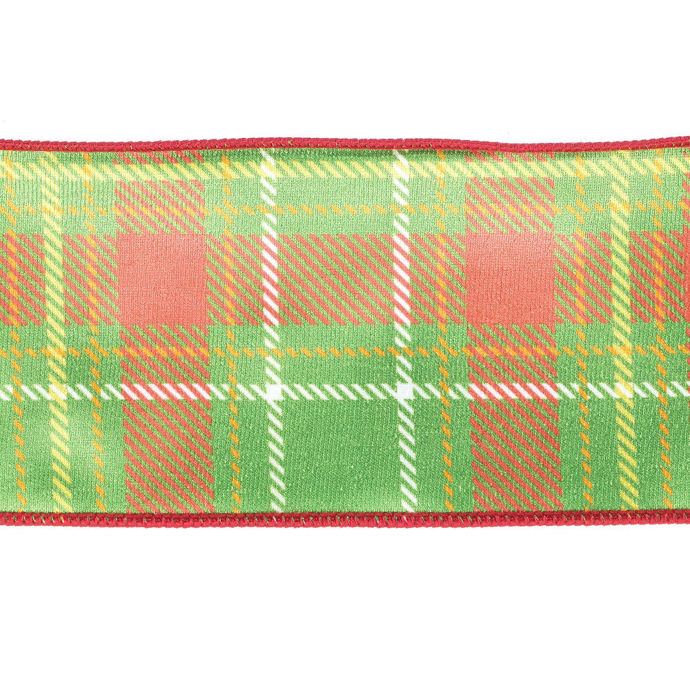 Vickerman 4" x 10 yd Green/Yellow/Plaid Wired Edge Christmas Ribbon.