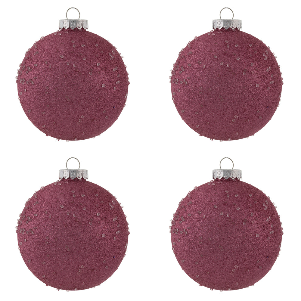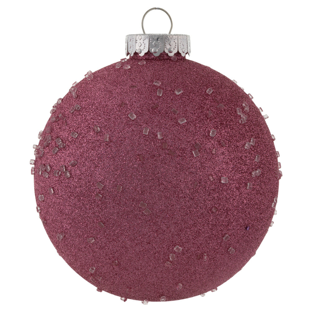 Vickerman 6" Mauve Ice Ball Ornament. This textured ornament has a rough and icy look with a hint of delicate sparkle. Incorporate these ornaments into your holiday design for added texture. Includes 4 pieces per pack. Made with shatterproof plastic.