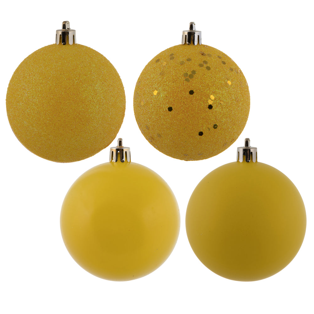 Vickerman 3" Yellow 4-Finish Ball Ornament Assortment 16 per Box