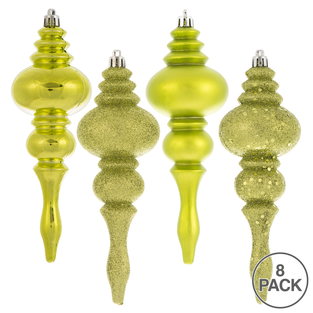 Vickerman 7" Lime 4-Finish Finial Ornament 8 per Box