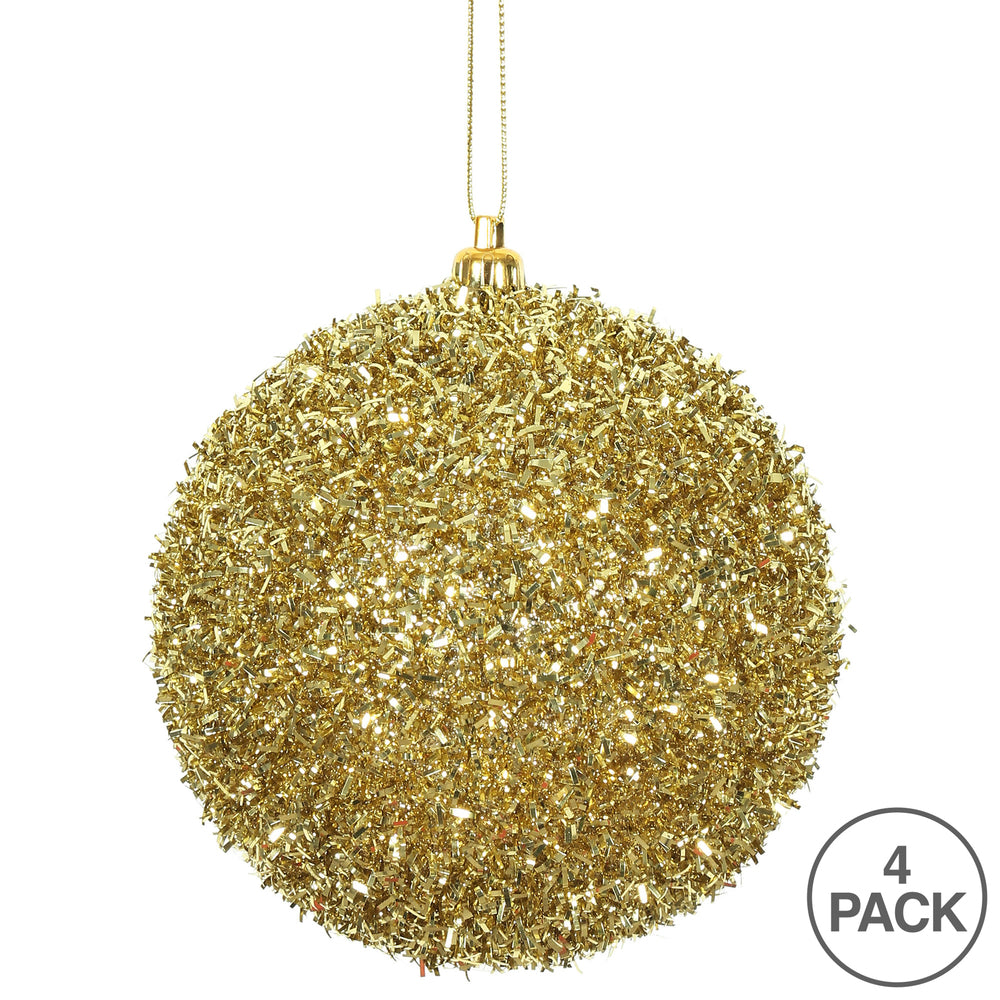 Vickerman 4" Gold Tinsel Ball Ornament 4 per Bag