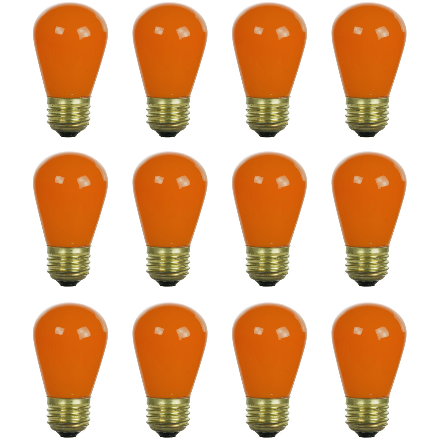 Sunlite 41479-SU S14 Incandescent Colored Party String Light Bulb, 11 Watts, Medium Base (E26), Dimmable, Mercury Free, Orange 12 Pack
