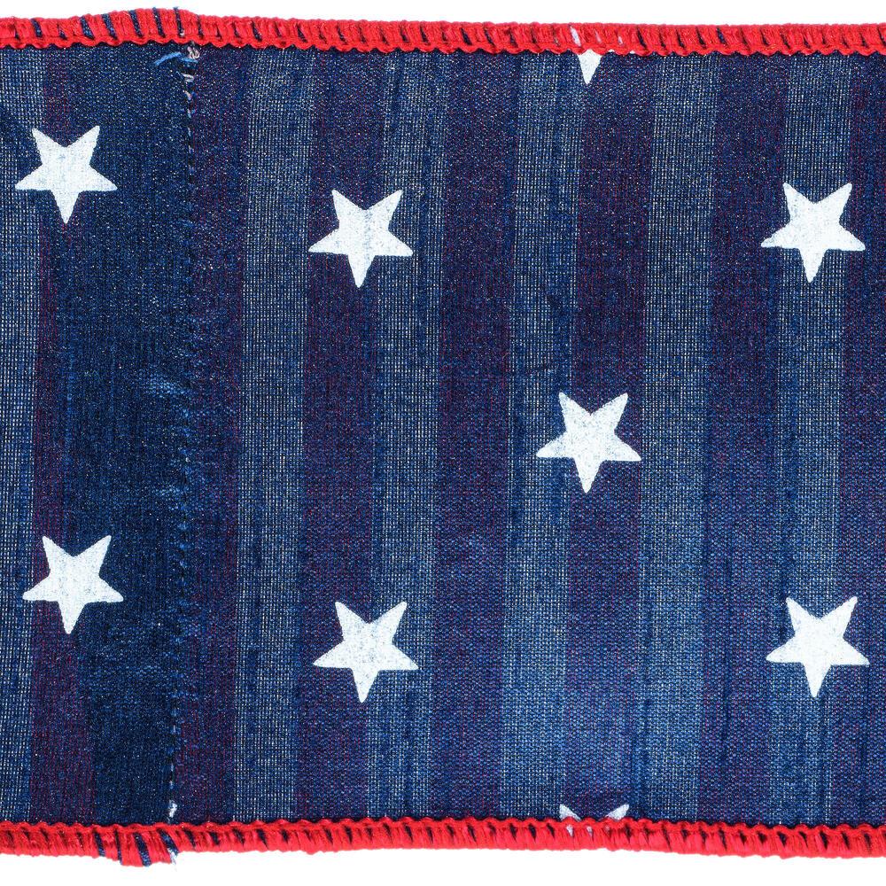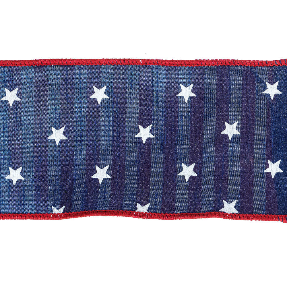 Vickerman 4" x 10 Yards Red/White/Blue Star/Stripe Wired Edge Holiday Ribbon.