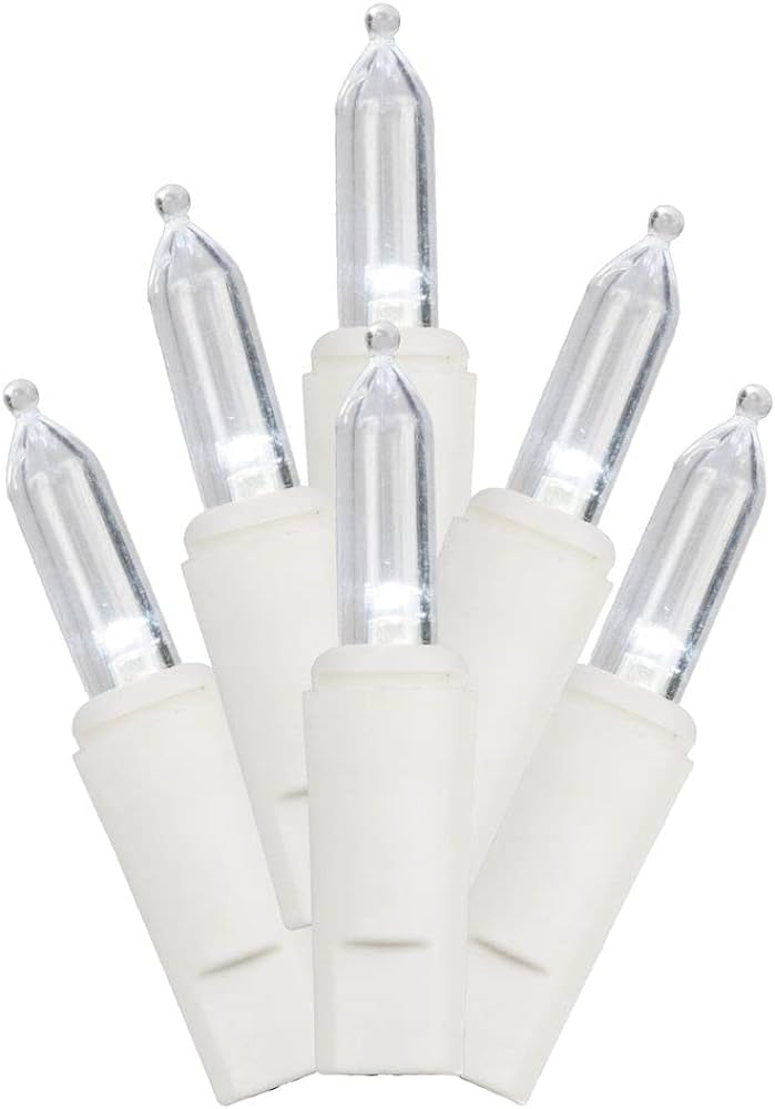 Clear Christmas Tree Mini Lights, 50 Lights, T1 3/4 Shaped, 16 Foot, White Wire, Steady Burning and Flashing