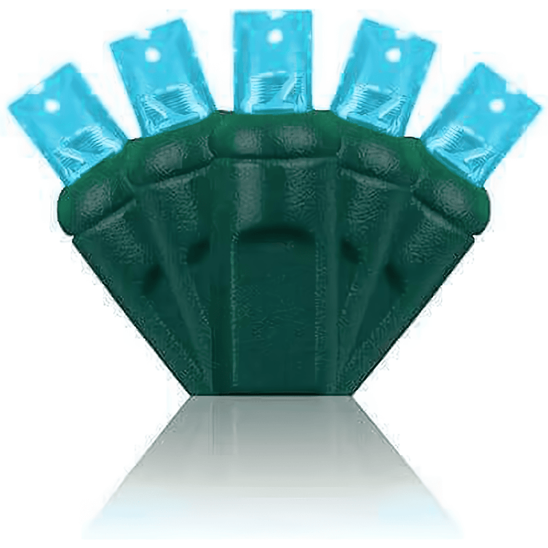 50-LITE 6" RECTIFIED 5MM CONICAL LED LIGHT SET; TEAL BULBS; GREEN WIRE, Approx. 25' Long