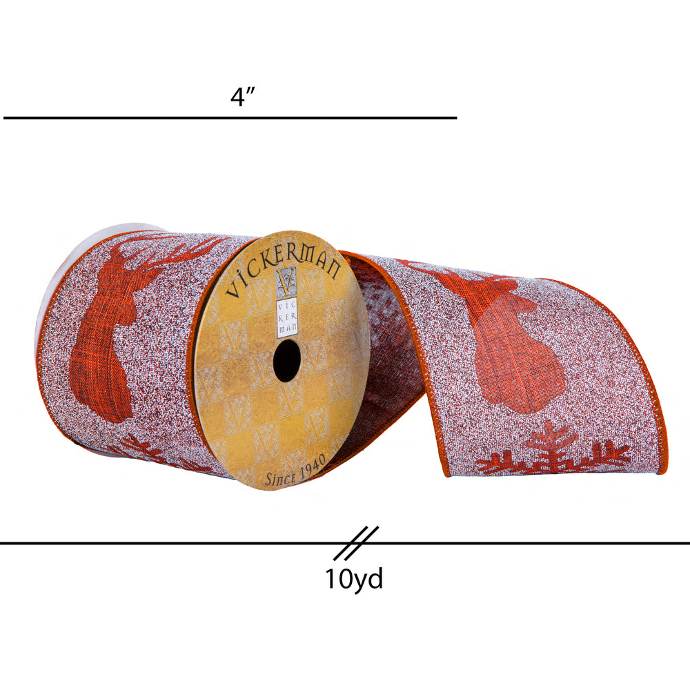 Vickerman 4" x 10 Yards Red Tree Snowflake and Deer Pattern Christmas Ribbon