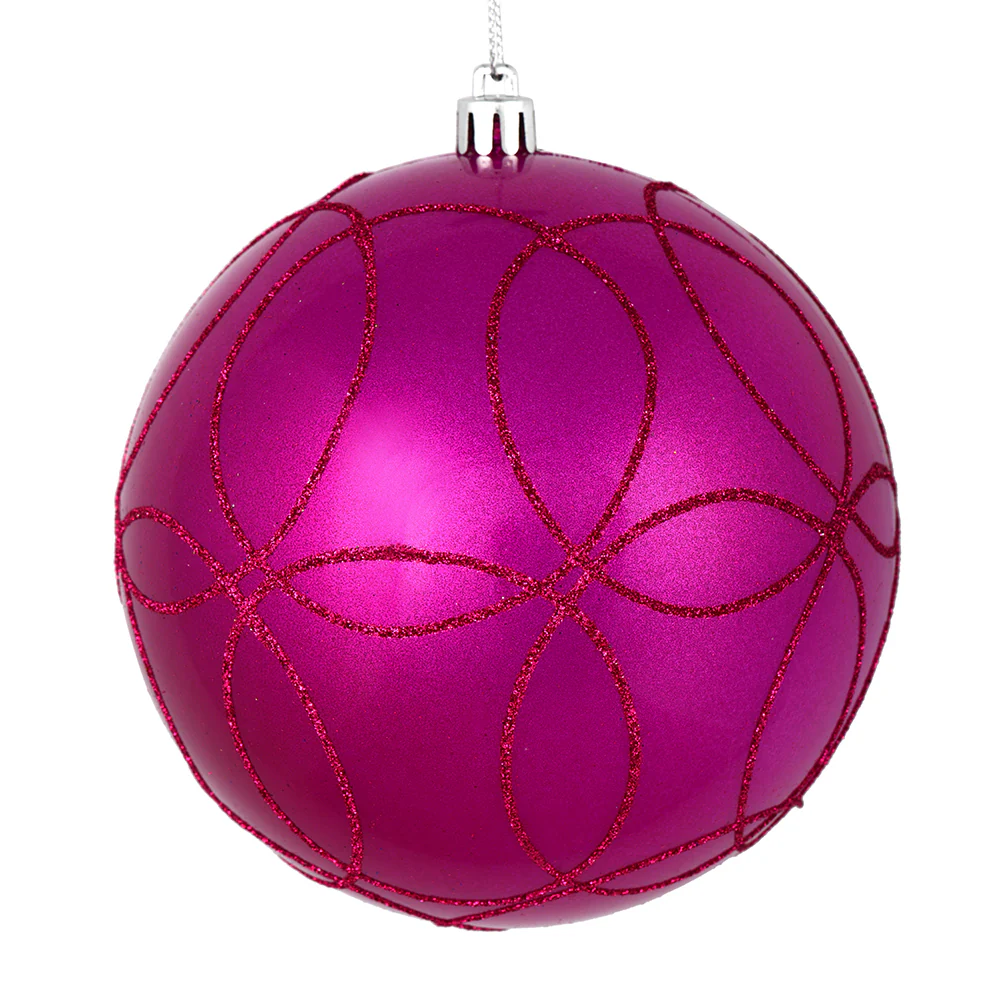 Vickerman 6" Fuchsia Candy Ornament with Circle Glitter Pattern 3 per Bag