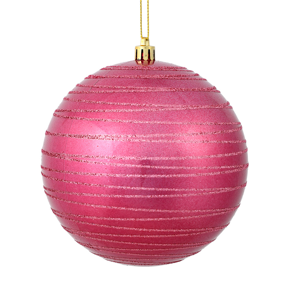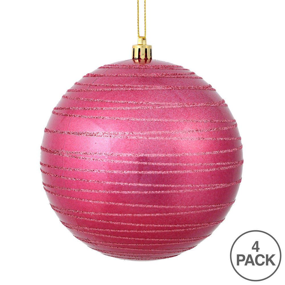 Vickerman 4" Mauve Candy Finish Ball Ornament with Glitter Lines 4 per Bag