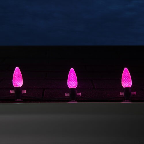 25-Light LED C9 Light Set; Pink Bulbs on Green Wire, Approx. 16'6" Long
