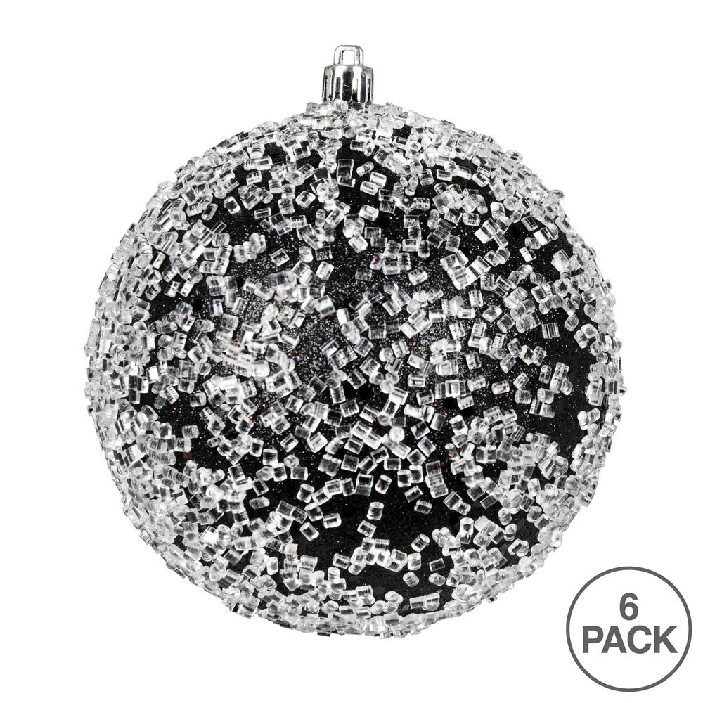 Vickerman 4" Black Glitter Hail Ball Ornament 6 per Bag