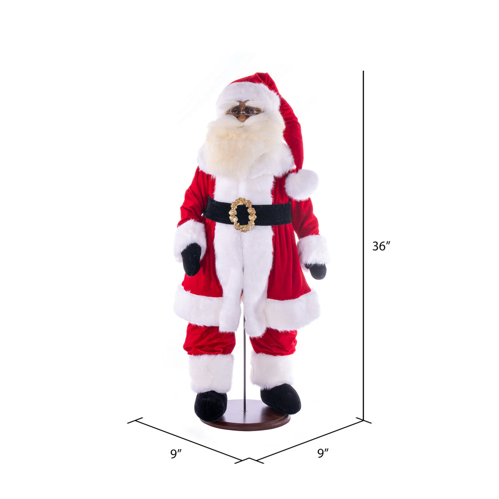 Vickerman 36" Red Traditional Velvet Dark Complexion Santa Doll with Stand. This Santa has glasses stand is removeable.