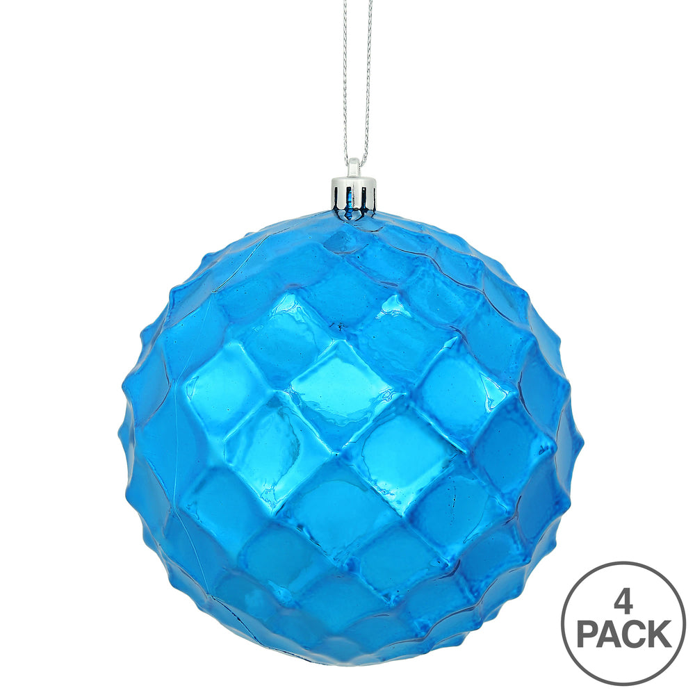 Vickerman 4.75" Blue Shiny Diamond Bauble Ornament 4 per Bag